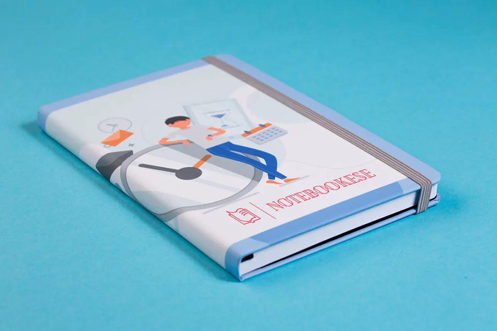 Este modelo incluye: cubierta impresa a todo color CMYK con laminado suave al tacto, cinta, lazo para bolígrafo y elástico, una opción para cubiertas interiores de colores y bolsillo de papel en la parte trasera. También ofrece la posibilidad de elegir seis estilos de página interior diferentes, consulta a continuación para obtener más detalles y todas las opciones disponibles.