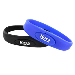 Fabricadas en silicona flexible y disponibles en varios colores, las pulseras USB son cómodas, resistentes y seguras. Puedes personalizarlas con tu logotipo o mensaje mediante serigrafía o grabado, convirtiéndolas en un regalo promocional original y funcional.