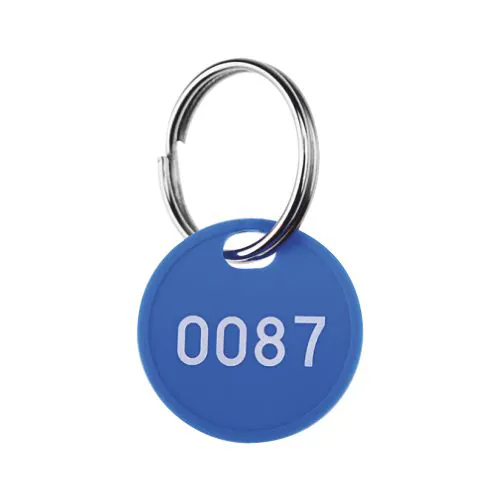 Un anillo de metal en combinación con una ficha con un agujero y una huella se puede utilizar como número de guardarropa o se puede fijar a las llaves como llavero.