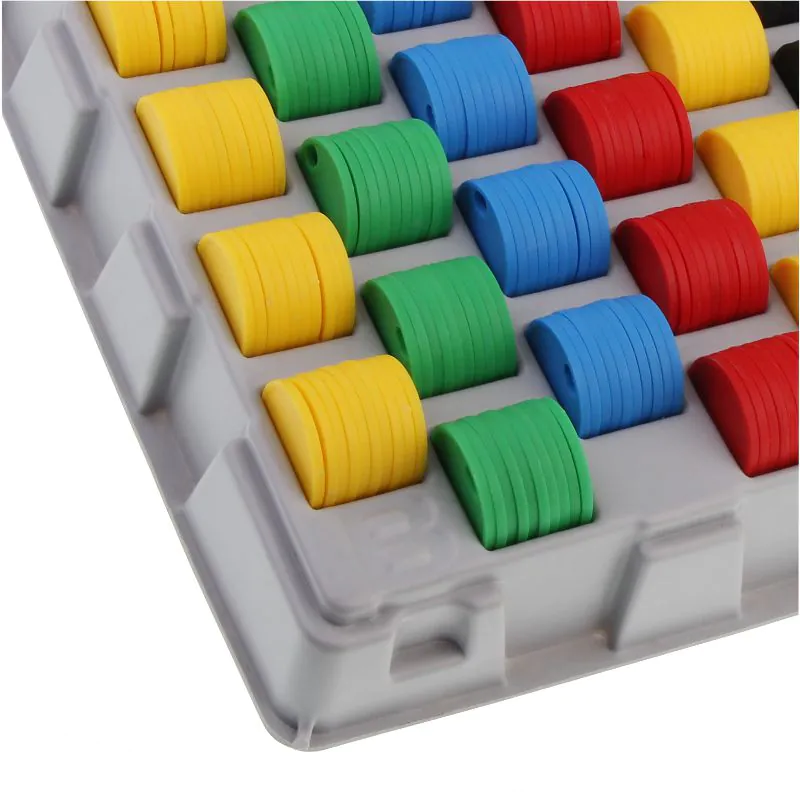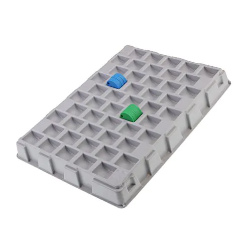 La bandeja está hecha de plástico, se pueden almacenar 500 unidades de fichas, la bandeja contiene 50 ranuras, cada ranura está diseñada para 10 fichas.